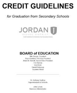 The purpose of this handbook is to provide Jordan School District administrators, school counselors, registrars, and other personnel with guidelines to ensure consistent awarding of credit across the District. These guidelines also cover graduation requirements and credit recovery information. If, after consulting this document, you do not find answers to specific questions, please consult with your school principal, a school counselor consultant/specialist, or an administrator of schools.